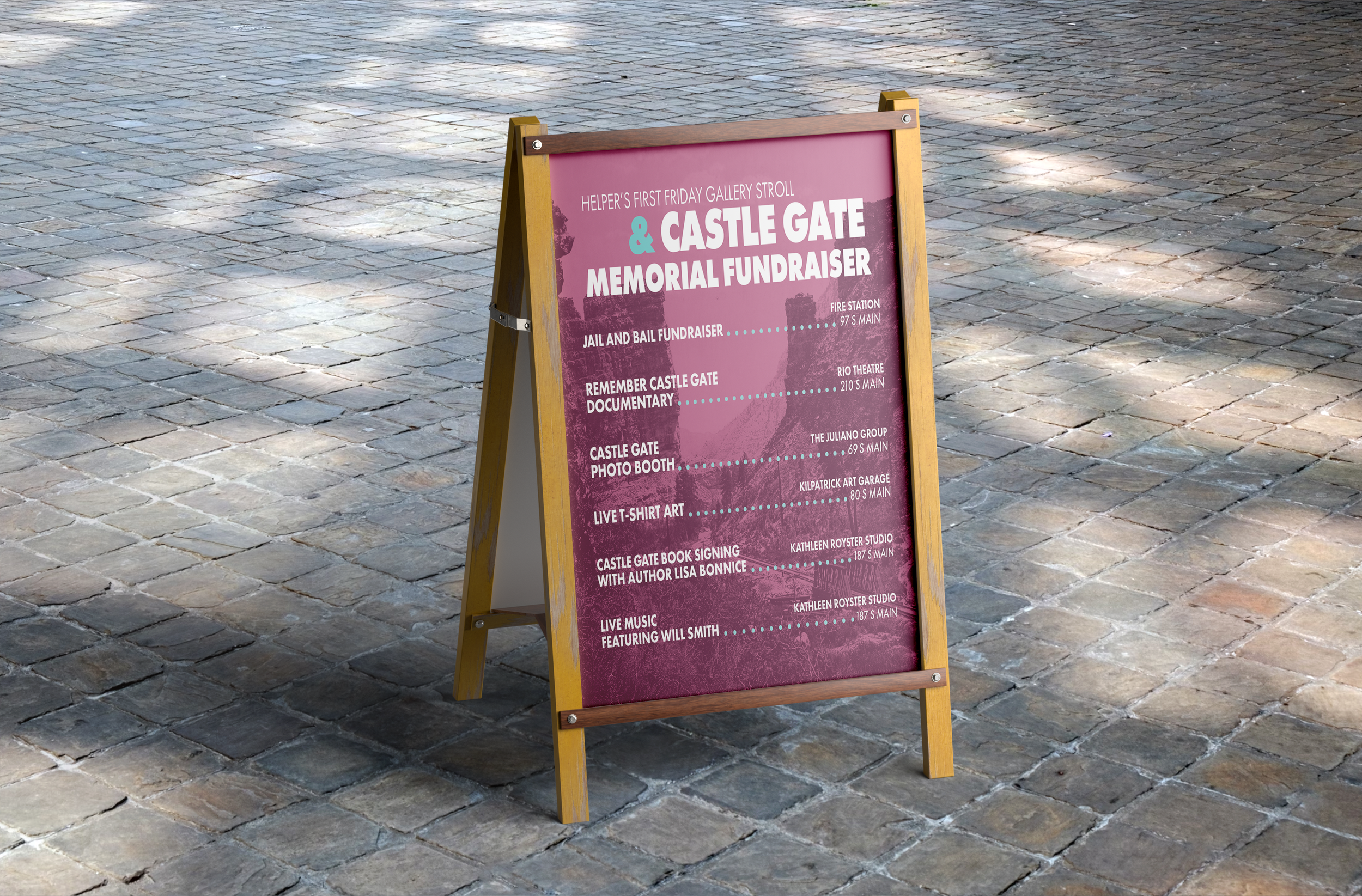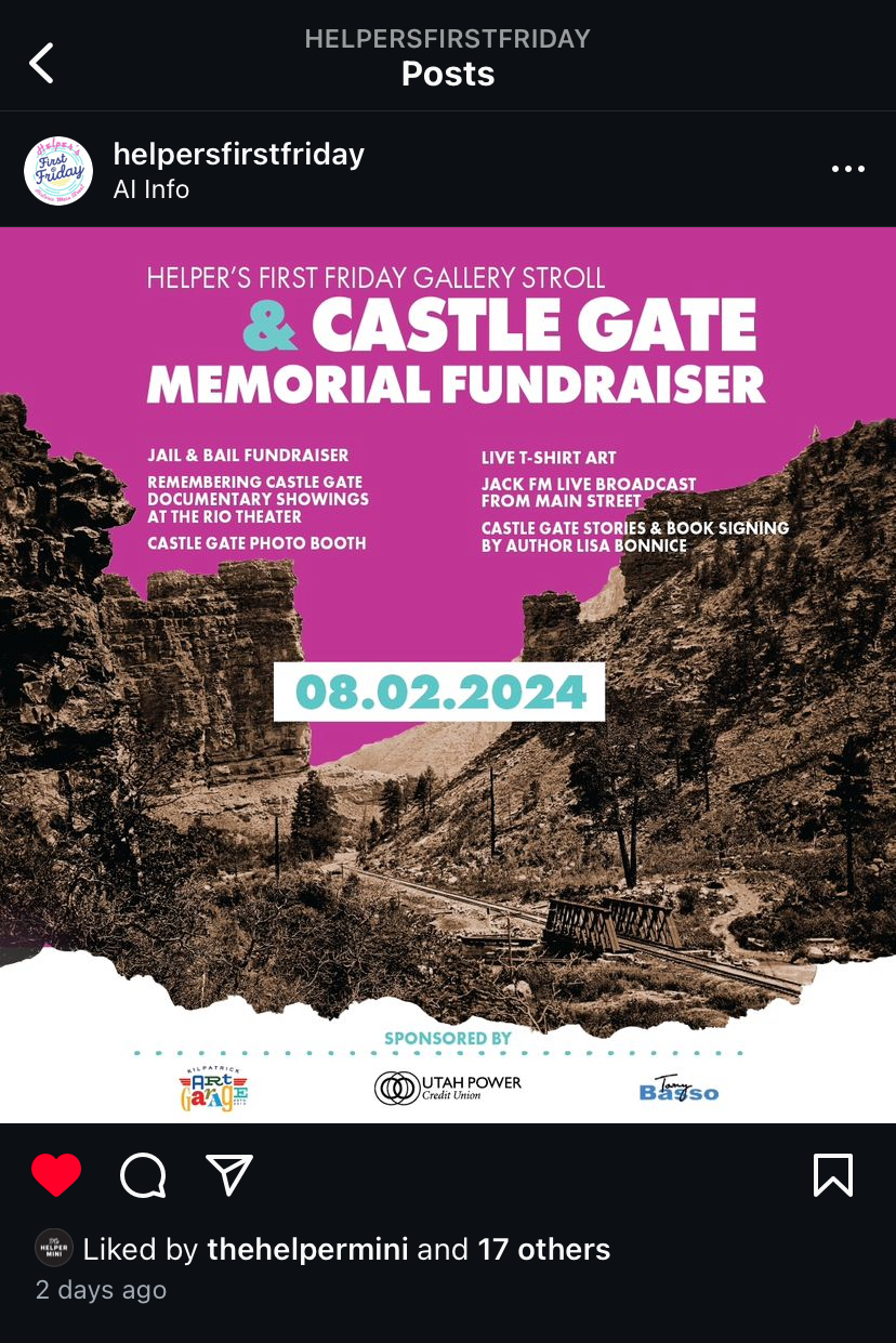 My goal was to grab the attention of the community, encourage attendance, and visually honor the memory of the Castle Gate miners. To do this, I used a historic photo of the Castle Gate disaster as the background image across all designs. Bold, high-contrast colors to catch the eye, and to stand out in public spaces and on digital screens.